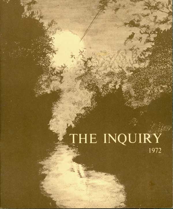 The Inquiry was our student art and literary magazine. In its pages each year were a gathering of student artwork, poetry, and short stories, selected for by their classmates. I have saved two copies, one from 1970 and one from 1972, the year I graduated.